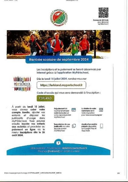 Les parents se connectent au site Myperischool, via l’adresse https://ferkland.myperischool.fr avec le code d’accès F3RL4ND.